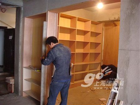 水電的走向和插座的布置已經(jīng)到位,師傅在做客房的大柜子,帶頭的師傅非常內(nèi)行,幫我們出主意。