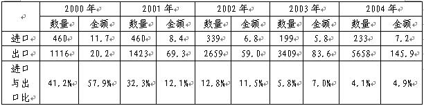 2000—2004年埃及瓷磚和衛(wèi)生潔具出口量國(guó)際分布表