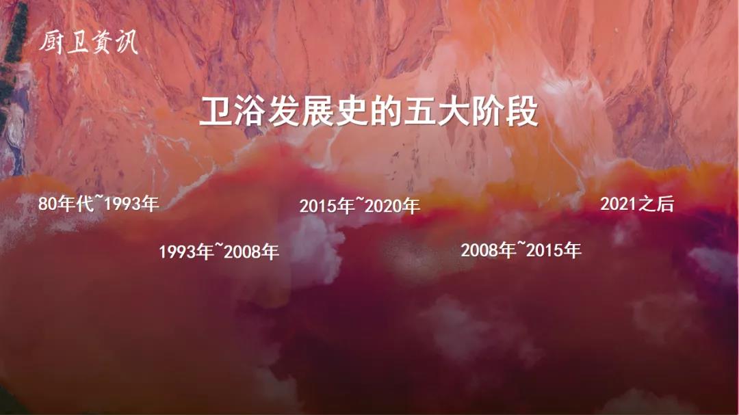 做2022年衛(wèi)浴發(fā)展趨勢(shì)分析前,回顧和梳理衛(wèi)浴發(fā)展史是非常有必要的。我國衛(wèi)浴的發(fā)展史大體可以分為五個(gè)階段,第一個(gè)階段是80年代到1993年,第二個(gè)階段是1993年~2008年,第三個(gè)階段是2008年~2015年,第四個(gè)階段是2015年到2020年,第五個(gè)發(fā)展階段便是2021年往后的時(shí)期。