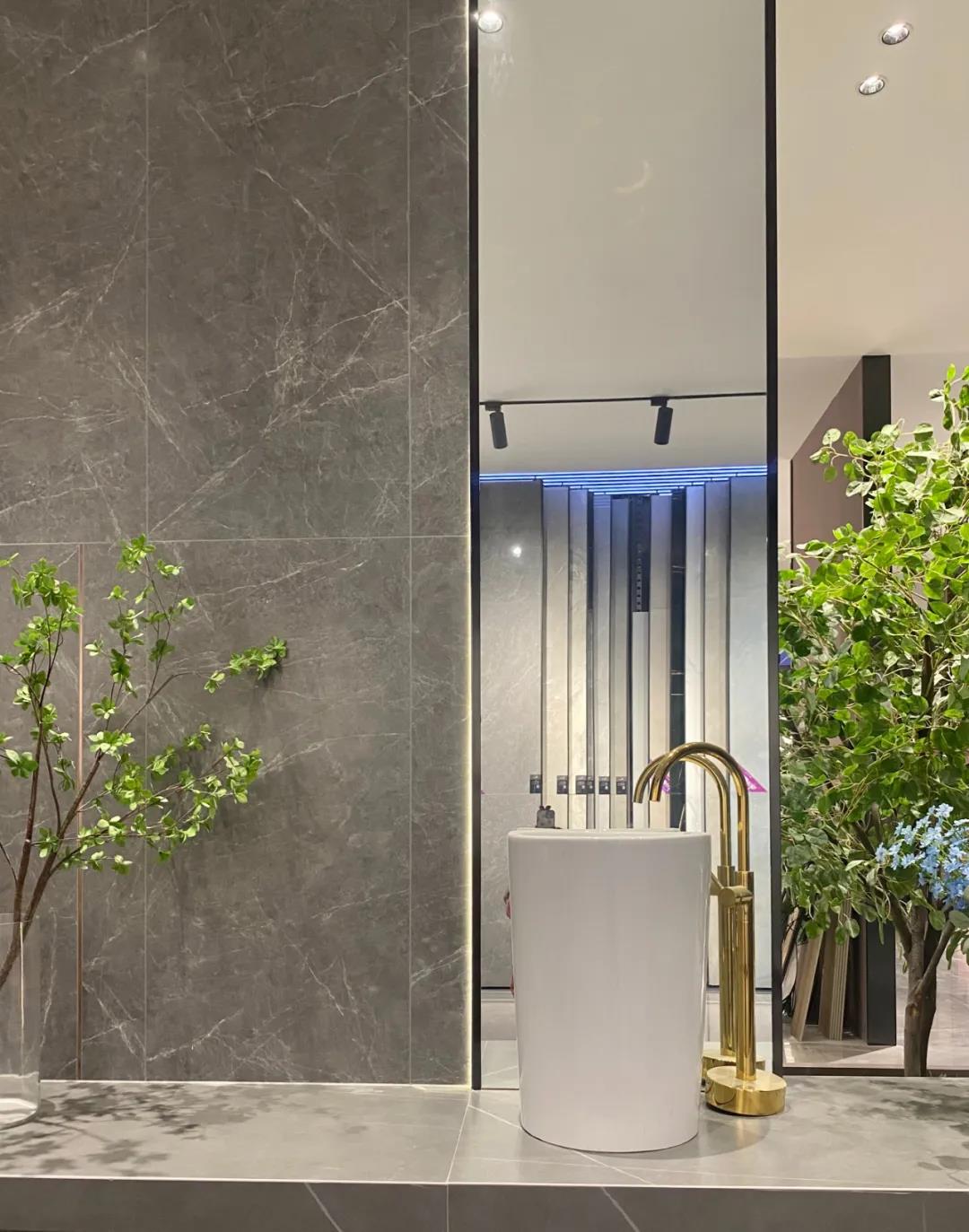 巖板在成份上與瓷磚接近,主要由天然粘土、二氧化硅及長石粉等無機(jī)氧化物。但是巖板不含釉,巖板的光澤是通過機(jī)器拋光形成的。巖板是大板,不是規(guī)格板的磚。這使巖板一躍成為工程項目的新寵。