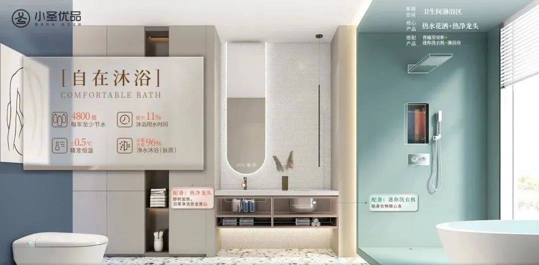 一直堅守【加熱+凈化】全衛(wèi)領域的小圣優(yōu)品,提出「不是所有衛(wèi)浴,都能加熱凈化」的品牌特性,挖掘中國家庭高質(zhì)量消費需求,在廚房洗切、日常盥洗、自在沐浴、舒適如廁、陽臺洗護【5大3空】的家庭用水+衛(wèi)浴場景中主導下,引進歐洲末端制熱系統(tǒng),以全衛(wèi)空間定制,給家?guī)碚w舒適熱水體驗。