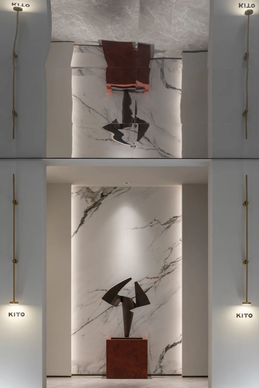 店鋪視覺是人們最直觀地認(rèn)知一個(gè)品牌的方式之一,消費(fèi)者往往會(huì)通過其存在的空間去理解它所要傳達(dá)的品牌文化。金意陶天府紅星臻選店開設(shè)于紅星美凱龍的賣場(chǎng)之中,依托于自身的獨(dú)特屬性,以全新的品牌面貌與革新之舉,吸引著人群的注意。