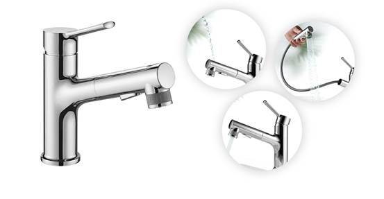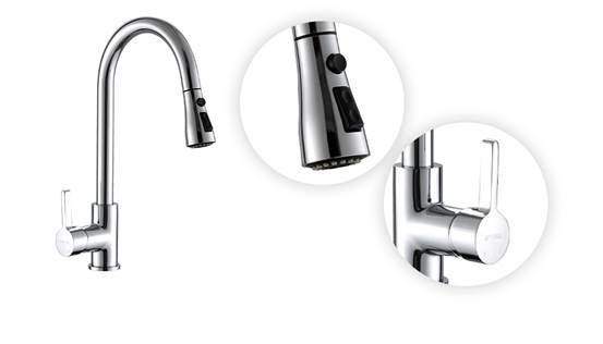 通過將原先的次臥室改造成了新的廚房,功能全新升級,抽拉廚房龍頭作為清洗擔當,出水需多元化。鷹衛(wèi)浴抽拉廚房龍頭EF-03711VN,水柱水和花灑水兩種水流隨意切換,輕松應(yīng)對不同清洗需求??沙槔逑矗鼜V的清洗范圍,讓廚房清洗更便捷。