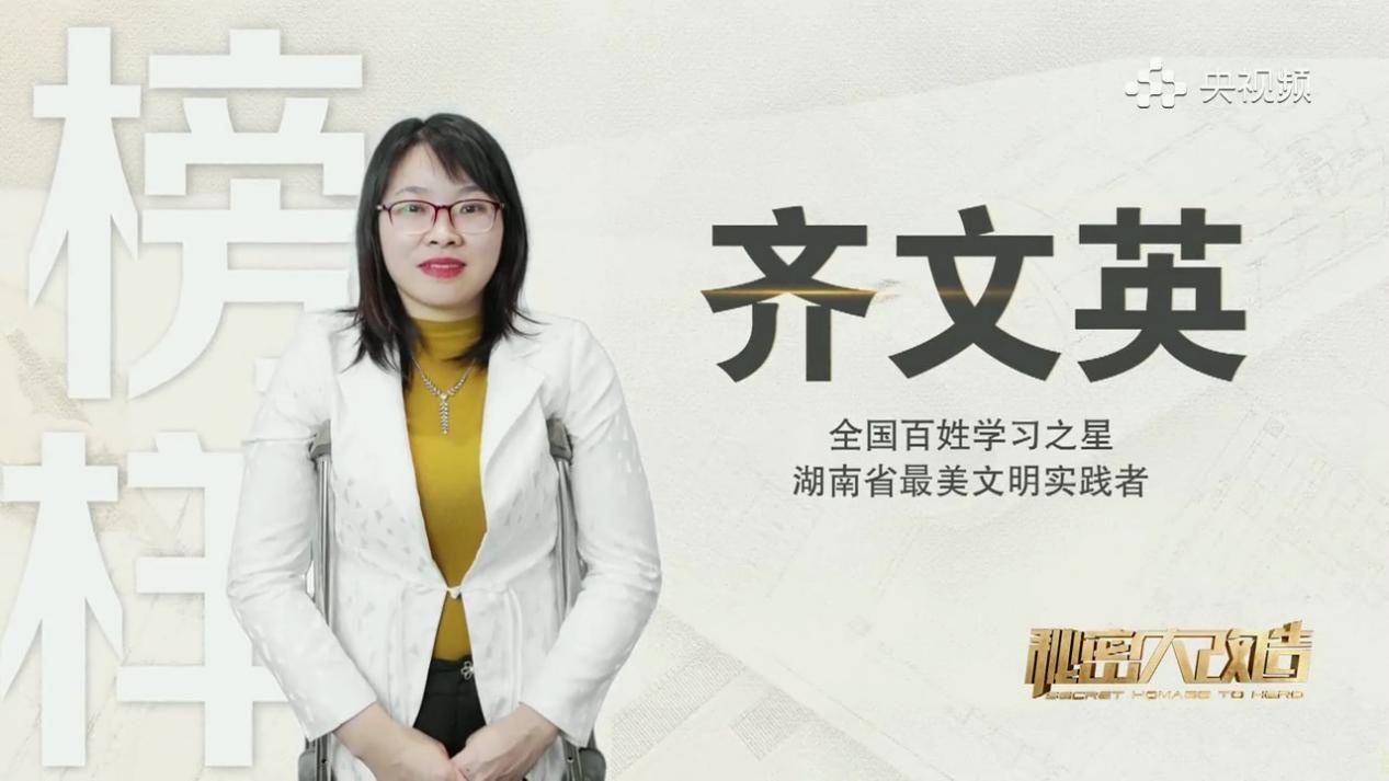 齊文英拄著雙拐,奔走在公益路上,十余年從未停歇,組織了數(shù)百場(chǎng)慰問特殊兒童、慈善義賣、特殊音樂會(huì)等公益活動(dòng),受益人群超過萬人,曾獲得“全國百姓學(xué)習(xí)之星”、“湖南省最美文明實(shí)踐者”等榮譽(yù)。