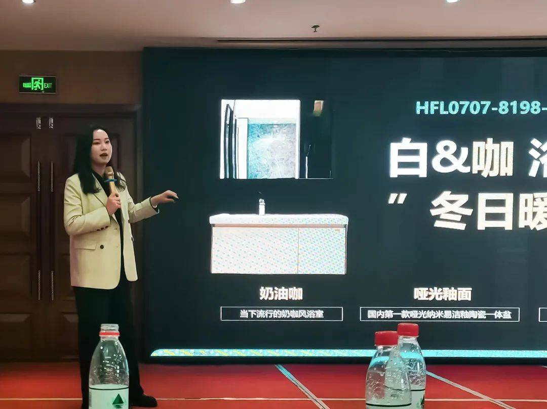 圖:惠達(dá)培訓(xùn)講師講解惠達(dá)尚雅系列HFL0707浴室柜