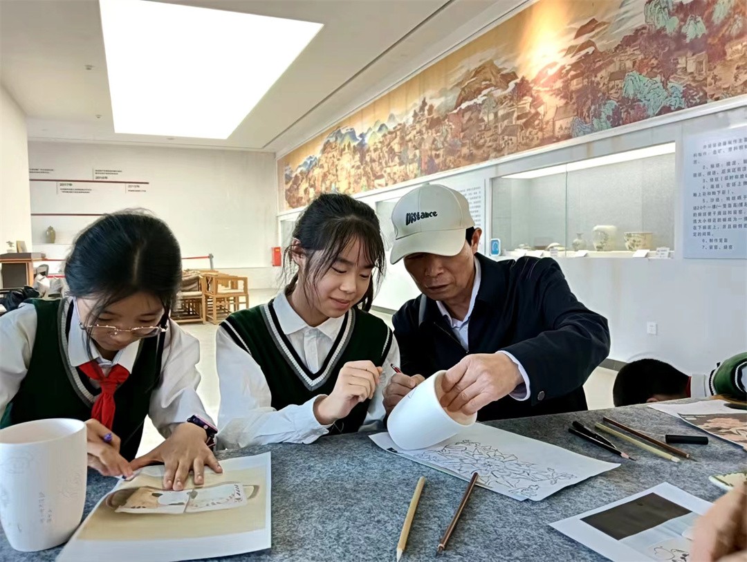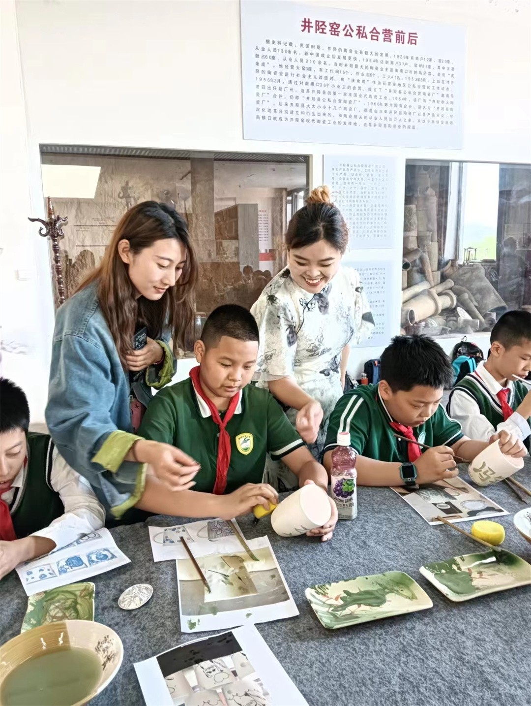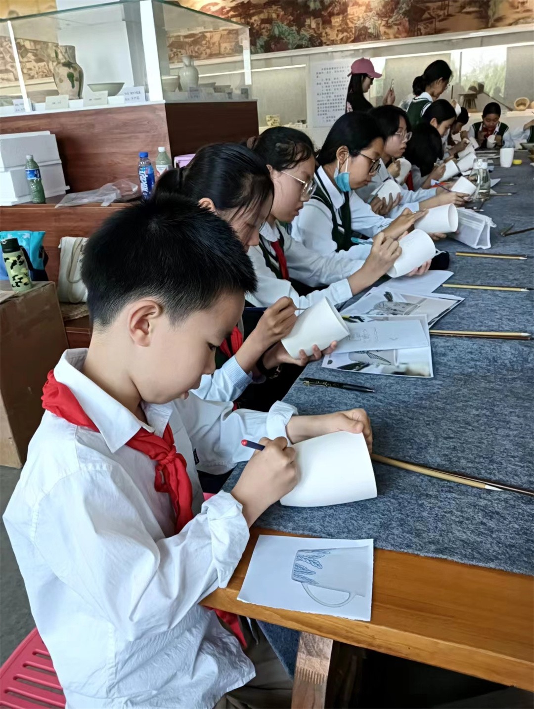 在活動開始之前,同學(xué)們先認(rèn)真完成了陶藝王老師布置的前參作業(yè),對井陘窯資料收集、學(xué)習(xí),帶著問題和思考去活動。在井陘窯工作人員的帶領(lǐng)和全程指導(dǎo)下,同學(xué)們聽講座+參觀+親自動手體驗學(xué)習(xí)、結(jié)合在學(xué)校陶藝課上所學(xué)的知識,同學(xué)們對陶瓷藝術(shù)更加著迷,多方位一體,深度研學(xué),通過實物標(biāo)本,同學(xué)們看到古代制瓷工匠,在選料、淘練、拉坯、修坯、配釉、施釉、裝飾、匣缽、燒裝、狀態(tài)和燒成等,可以清晰得看見瓷器燒造的全流程。同學(xué)們在參觀中學(xué),在動手中領(lǐng)悟,零距離感受手藝人的匠心。在動手體驗實踐環(huán)節(jié),同學(xué)們興致勃勃,沉浸式體驗釉下彩繪和拉坯陶藝技法,惟妙惟肖、栩栩如生的一個個作品在同學(xué)們手中誕生了,