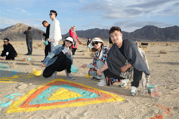當(dāng)沙畫藝術(shù)遇到巖板,這場相遇注定不平凡,藝術(shù)家在巖板上繪制沙畫,利用巖板的特殊質(zhì)感和紋理,使沙畫作品更加生動(dòng)逼真,將沙畫藝術(shù)的精髓融入到意大利施恩德巖板的自然之美中。于戈壁之中,遇見絕美意境。沙畫藝術(shù)與巖板的結(jié)合體現(xiàn)了更廣泛的人居生活與藝術(shù)跨界的可能,為參與者帶來了更多元化、更具創(chuàng)新性的藝術(shù)享受。