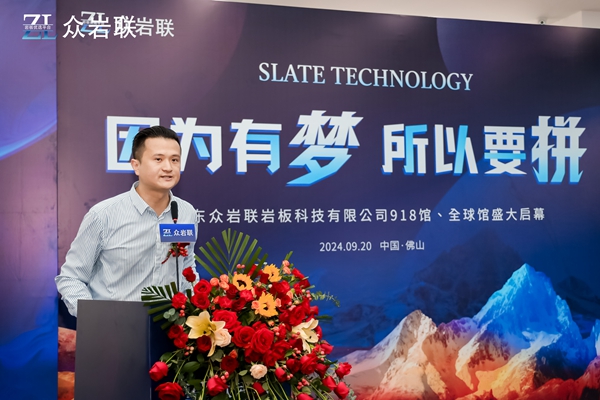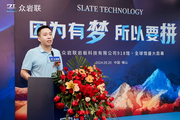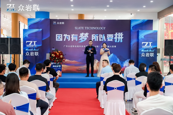 眾巖聯(lián)巖板董事長戴錦平,在致辭中,感謝各界嘉賓代表百忙之中來參加開業(yè)儀式。還說到,自己從小的時候,就一直有夢想,而夢想也伴隨著自己長大,堅持夢想,做好每一件事,每一個工作。現(xiàn)在的夢想就是:為美好生活做好每一片巖板,和10萬家創(chuàng)業(yè)型巖板企業(yè)勇攀高峰,成為全球高端墻面現(xiàn)貨巖板平臺引領(lǐng)者。因為有夢,所以要拼?,F(xiàn)在有一群跟我一起追夢的事業(yè)伙伴,為了共同的夢想,努力拼搏,夢想到實現(xiàn),從來不是一帆風(fēng)順。眾巖聯(lián)巖板平臺從0到1的過程,充滿了挑戰(zhàn)與困難。比如資金的挑戰(zhàn)、市場的競爭、技術(shù)的瓶頸……每一個環(huán)節(jié)都考驗著我們的智慧和毅力。然而,正是因為我們這一群人有共同的夢想,才有了堅持下去的勇氣。我們也深知,只有拼搏,才能讓夢想照進(jìn)現(xiàn)實。這也促使我們實現(xiàn)了一年多來的逆勢增長,銷售業(yè)績翻倍;以及我對巖板事業(yè)未來的信心、決心、恒心。