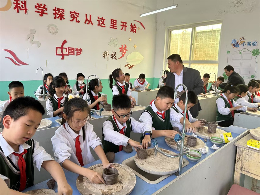 4月19日,石家莊市盛世長安小學(xué)教師計春麗、王新會,帶領(lǐng)學(xué)生前往井陘礦區(qū)古村落藝術(shù)村,開展研學(xué)活動。走進藝術(shù)村,古宅錯落,色彩繽紛,溪水環(huán)繞,同學(xué)們參觀了藝術(shù)家院落,訪問了多位國家級藝術(shù)家駐地工作室、欣賞了各種藝術(shù)作品,參觀了正豐左岸美術(shù)館展岀的藝術(shù)精品展,具有濃厚的紅色文化底蘊,藝術(shù)村保留了古老村落的韻未,同時融入了現(xiàn)代藝術(shù)的靈魂,形成了獨特的藝術(shù)氛圍。在馮家溝陶藝館,在李耀會老師的熱情講解下,同學(xué)們了解非物質(zhì)文化遺產(chǎn)馮家溝陶瓷技藝的制作工藝、歷史背景以及作品之美,同學(xué)們還親自動手操作體驗勞動創(chuàng)造美的過程,捏一捏、揉一揉、搓一搓、粘一粘,在老師的指導(dǎo)下,同學(xué)們將手中的泥土制成各式各樣的造型,沉浸式體驗了古老傳統(tǒng)手工陶藝的成型工藝。陶藝,源于陶土,融于水火,塑于人工,一件陶藝品,由泥土,經(jīng)火淬煉至最終成于器,需經(jīng)采石制泥、成型、配釉,啄器燒制等工序,期間流程繁瑣,細節(jié)頗多,更有諸多偶因素,因此器之所成極其不易,從陶土到成品、需要經(jīng)過幾十道工序,每一工序都凝聚著匠人的精神與智慧。通過實踐,不僅讓同學(xué)們感受到了“陶瓷藝術(shù)”非物質(zhì)文化遺產(chǎn)的精妙,更讓同學(xué)們懂得了堅持與專注的意義,同時也增強了同學(xué)們的自信心和自我價值感。
