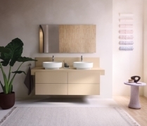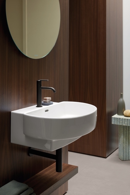 該系列的設(shè)計核心與靈魂色調(diào)——啞光陶土色,以傳統(tǒng)工藝為靈感,賦予陶瓷產(chǎn)品質(zhì)樸自然而溫暖優(yōu)雅的質(zhì)感,使其更具有手工般的真實觸感。Urquiola表示:“我們的目標(biāo)是利用陶土這種材料,創(chuàng)造出一種讓衛(wèi)浴用品更有層次的畫布。這是有意偏離純白或純黑極簡美學(xué)的嘗試?!边@也構(gòu)成了浴室家具的配色基礎(chǔ),大地色系的陶土色調(diào)以及以自然為靈感的色彩搭配,其中融入了白色、土棕色和啞光炭黑色的微妙變化,預(yù)示著浴室色彩運用的全新開放性。